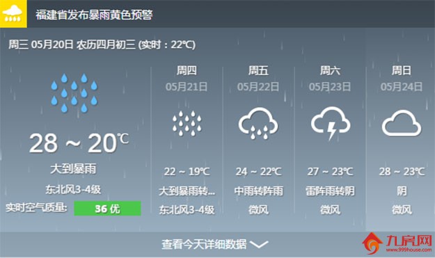 根据气象部门和中国天气网获取到信息,受到冷空气和西南暖湿气流的影响,预计从今天开始,厦门将出现明显降水,东北风3-4级,温度最低可达到22℃。将持续3天之久到22日下午,雨势才会逐渐减弱。预计整个降雨过程雨量达到50至100毫米,局部甚至超过120毫米。