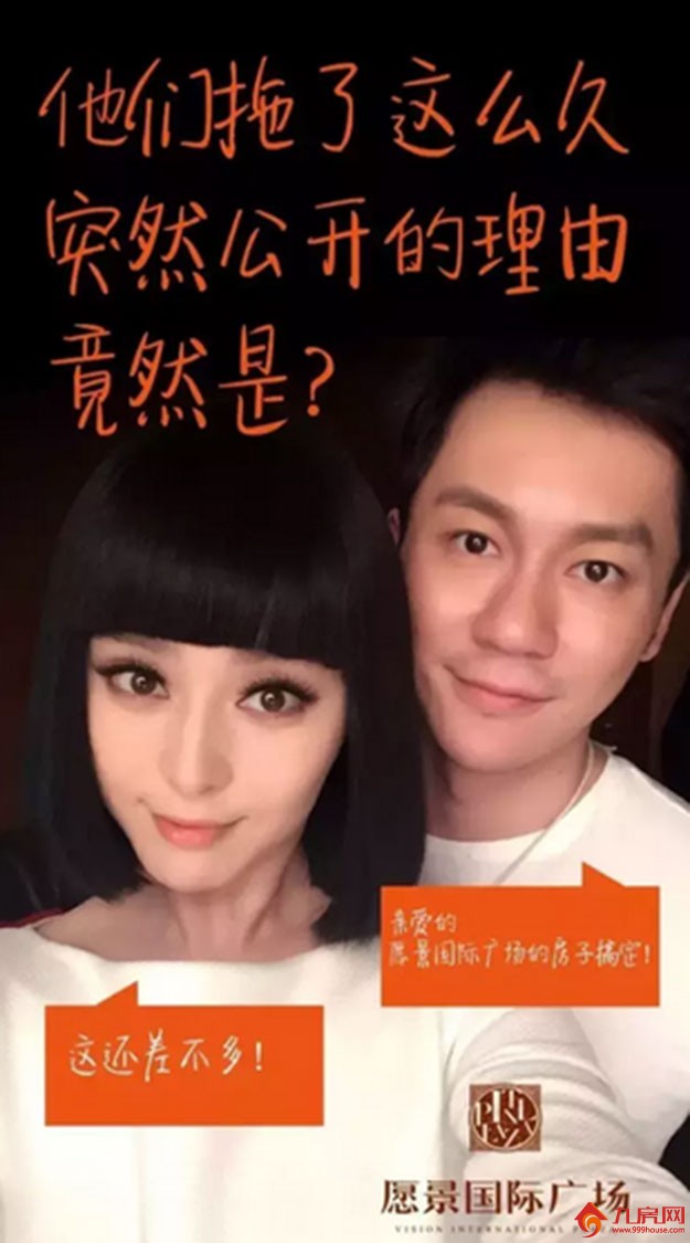 5月29日李晨和范冰冰承认了两人的恋情。陆川、杨幂、赵薇等圈中众好友纷纷送祝福。而范冰冰李晨的情侣照也成为了最佳照片,引各路友人争相模仿,联合国官方微博也加入到了调侃“晨冰恋”的队伍中,晒出了一张联合国秘书长潘基文与妻子的合影,有网友戏言:“范冰冰与李晨的爱已惊动了联合国!”房地产商更是玩得嗨起来了,各大平台,朋友圈开始刷屏了,各大开发商纷纷加入了“我们”的大军!