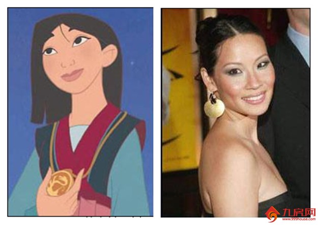 还有什么好说的,美国人就是照着刘玉玲画的花木兰。这位美国人眼中最美丽的中国女子:细长的丹凤眼、性感的小嘴唇、曼妙的身姿。她武功高强、性格坚韧,面容冷峻又不失女人味,好像是美国男人心目中最理想的伴侣模式。木兰从军成为了女英雄,但是老美硬是给她安排了一段恋情,而刘玉玲在《霹雳娇娃》中虽然骁勇善战,也脱不了儿女情长。