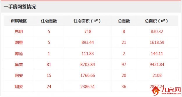 从各区的一手住宅成交数据来看,集美区以成交81套位居全市一手住宅成交排行榜第一位;翔安区成交24套,位居排行榜第二位;同安区均成交15套,位居排行榜第三位。