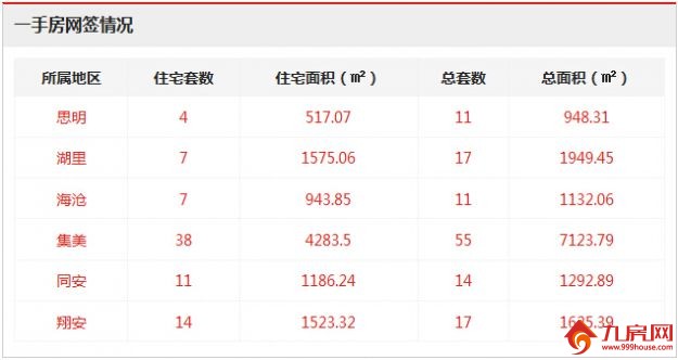 从各区的一手住宅成交数据来看,集美区成交38套,位居全市一手住宅成交排行榜榜首;翔安区成交14套,位居排行榜第二位;同安区成交11套,位居排行榜第三位。
