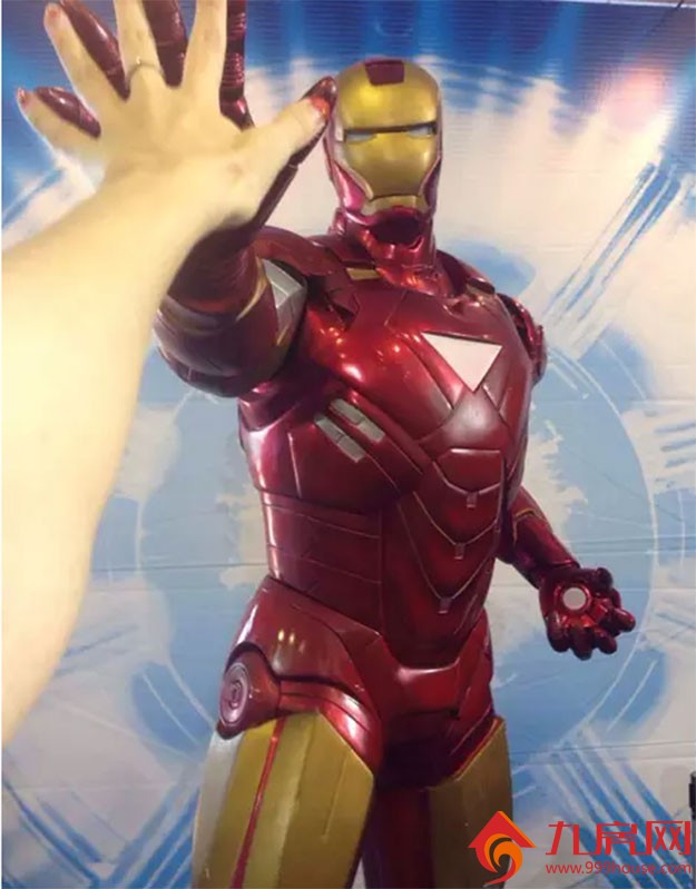 而紧挨着蜘蛛侠的,我们可以看到以格纳库为背景的一比一真人模拟钢铁侠。作为《复仇者联盟》的主心骨,钢铁侠有的是赤铜色的高科技外壳,以及洞察一切的目光。