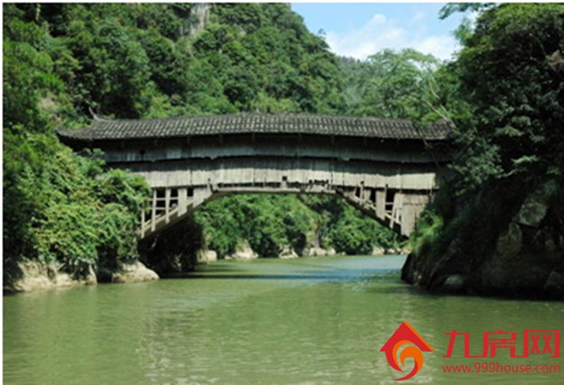 廊桥:廊桥上部的廊、屋、亭、阁 统称为桥屋。综观福建廊桥 桥屋的结构、造型和细部做法,最主要的建筑特色有两个:一是内部构架和中国其他传统建筑一样,属于木结构体系;二是外部造型美观,屋顶形式因廊、屋、亭、阁的不同而变化多样、绚丽多彩 。
