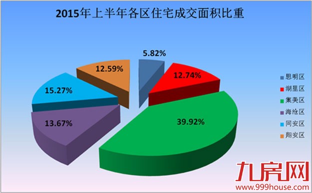 集美区 2015年1-6月住宅共成交4715套,在各区上半年的销售量中排行第一;销售面积532581.124平方米,占全市的39.92%。