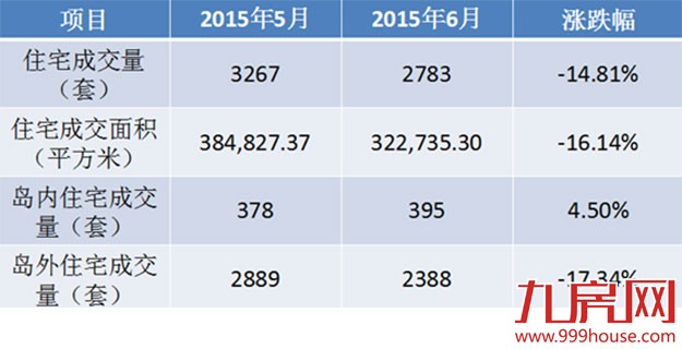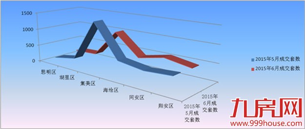 本网根据官方数据统计,2015年6月厦门全市新建商品房成交5163套,其中一手住宅成交2783套,比去年同期的1697套增加了1086套,同比上涨64%;比2015年5月的3267套减少了484套,环比下跌14.81%。一手住宅签约面积322735.30平方米,与2015年5月的384827.37平方米相比,环比下跌16.14%。