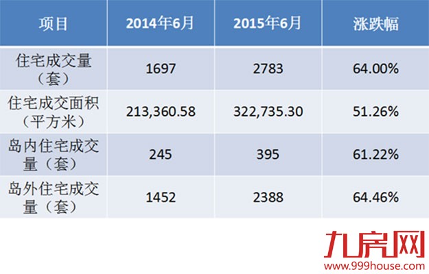 2015年6月与2014年6月一手住宅成交情况