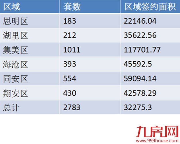在各区一手住宅成交方面,集美区以1011套的成交量居全市各区一手住宅成交量之首;同安区成交554套,位居第二;翔安区成交430套,排名第三。