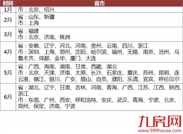 上半年各地放松房地产调控政策情况