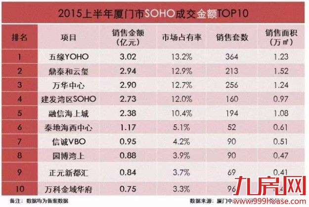 【SOHO成交金额排名】