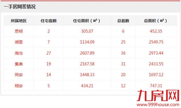从各区的一手住宅成交数据来看,海沧区成交27套,位居全市一手住宅成交排行榜榜首;集美区成交19套,位居排行榜第二位;同安区成交14套,位居排行榜第三位。
