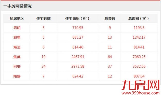 从各区的一手住宅成交数据来看,同安成交24套,位居全市一手住宅成交排行榜榜首;集美区成交19套,位居排行榜第二位;翔安区成交7套,位居排行榜第三位。