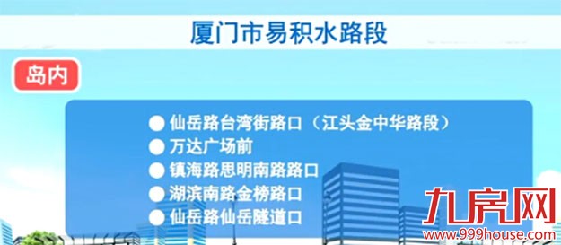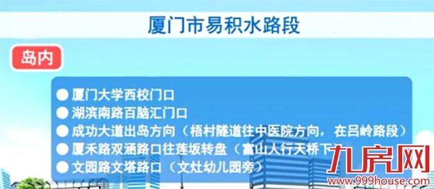 集美区易积水路段则主要在厦门北站下穿隧道、厦门理工学院集美校区等9个路段;