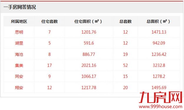 从各区的一手住宅成交数据来看,集美成交17套,位居全市一手住宅成交排行榜榜首;翔安区成交12套,位居排行榜第二位;同安区成交9套,位居排行榜第三位。