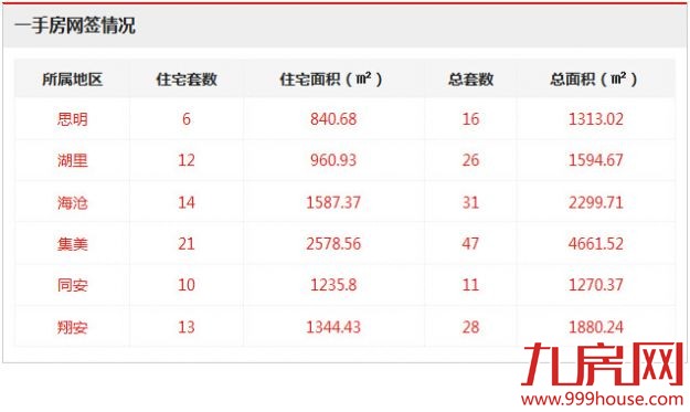 从各区的一手住宅成交数据来看,集美成交21套,位居全市一手住宅成交排行榜榜首;海沧区成交14套,位居排行榜第二位;翔安区成交13套,位居排行榜第三位。