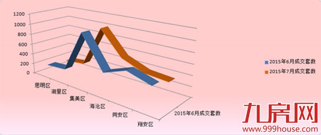 从具体成交量看,受大环境影响,7月份厦门一手住宅成交2540套,同比上涨48.45%,环比下跌8.73%,集美区以991套的成交量居全市各区一手住宅成交量之首;海沧区成交527套,成为本月成交量环比唯一上涨的区域。