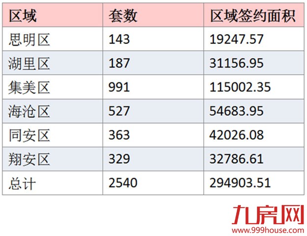 在各区一手住宅成交方面,集美区以991套的成交量居全市各区一手住宅成交量之首;海沧区成交527套,位居第二;同安区成交363套,排名第三。