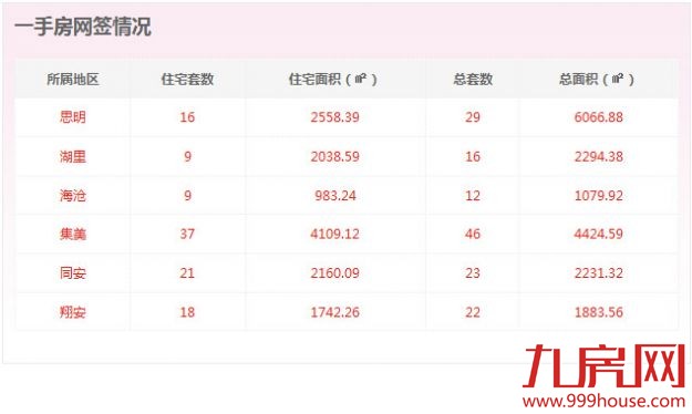 从各区的一手住宅成交数据来看,集美区成交37套,位居全市一手住宅成交排行榜榜首;同安区成交21套,位居排行榜第二位;翔安区成交18套,位居排行榜第三位。