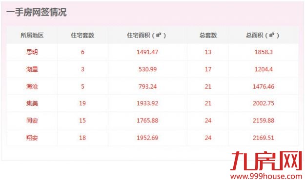 从各区的一手住宅成交数据来看,集美区成交19套,位居全市一手住宅成交排行榜榜首;翔安区成交18套,位居排行榜第二位;同安区成交15套,位居排行榜第三位。