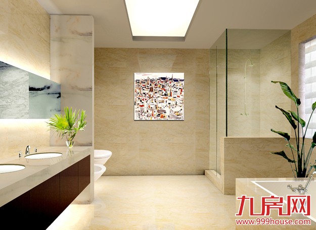 56、洗手间的淋浴房一定要尺寸够大,而且要用透明玻璃,这样在里面冲凉不会显得狭促。