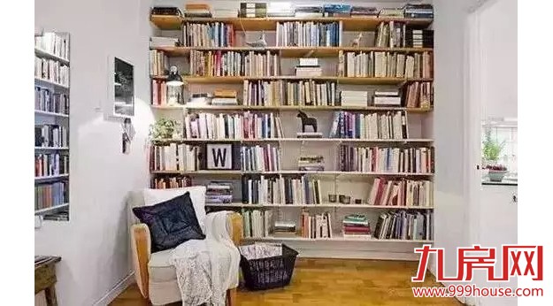 一个角落,用打通的搁板做书柜,完整利用墙面,更窄的墙面也同样适用。