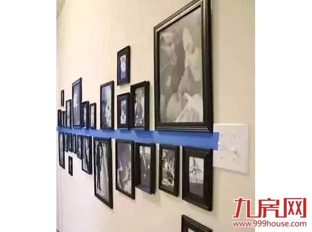 照片墙/壁画墙,8090后的最爱。用胶带拉一条过来对齐,强迫症棒棒的!