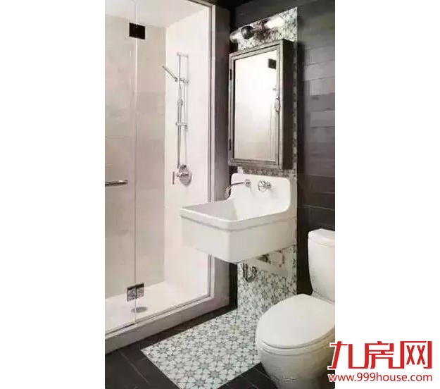 或者单独为洗漱区搭配的一条装饰瓷砖,洗手池上方的镜柜省去了很多瓶瓶罐罐的烦恼,简洁好用,还搭配了一个符合体系的复古壁灯。