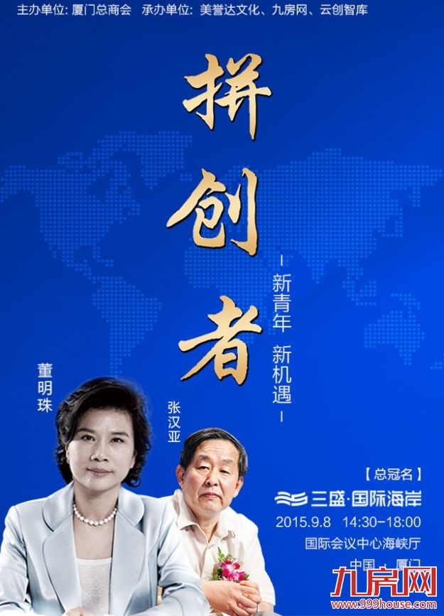论坛由2015厦洽会组委会、中国投资协会指导,由厦门市总商会主办,三盛国际海岸总冠名,由九房网、美誉达文化传播、云创智库等联袂策划承办,厦门市青年企业家协会,厦门女企业家协会、建发房产等协办
