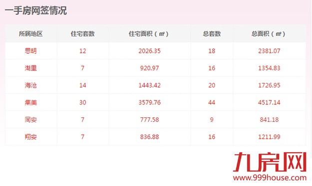 从各区的一手住宅成交数据来看,集美区成交30套,位居全市一手住宅成交排行榜榜首;海沧区成交14套,位居排行榜第二位;思明区成交12套,位居排行榜第三位。