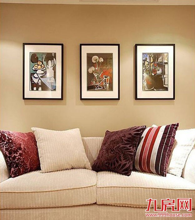 照片横竖交叉排列装点后,让客厅拥有了一个引人注目的沙发背景墙。相同的照片框架不同的排列方法,突出照片整体展示的个性和巧妙心思。
