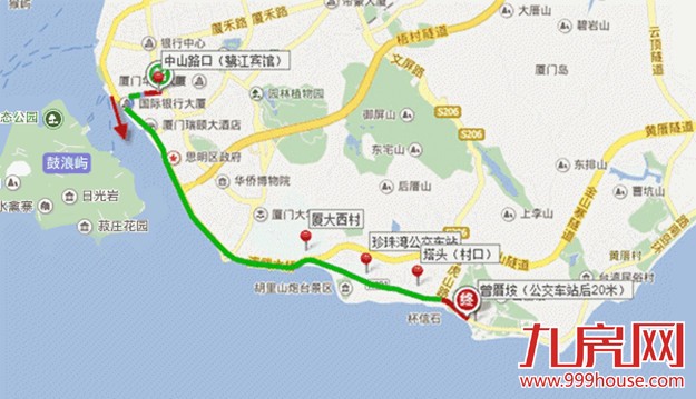【线路走向】中山路口(鹭江宾馆)-厦大西村-珍珠湾公交车站-塔头(村口)-曾厝垵(公交车站后20米)