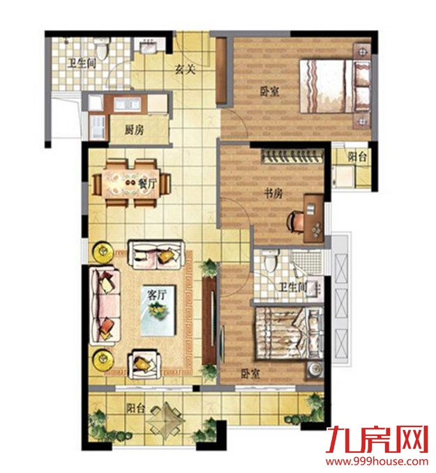 110㎡三房二厅二卫户型赏析