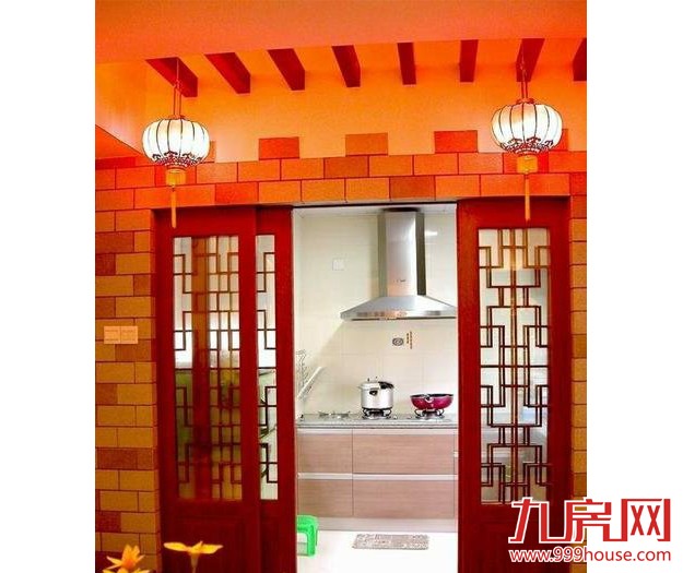 7、厨房门最好选用木制的吊轨门,以方便进出。