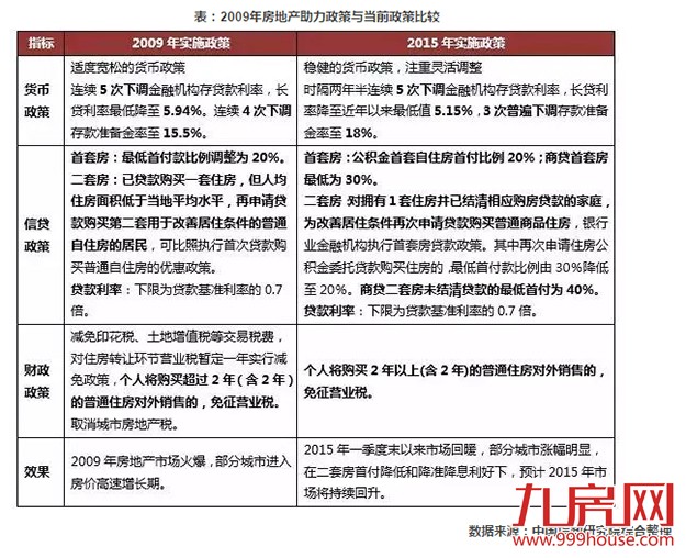 自上年“930”新政以来,中央从货币政策、信贷政策、财政政策等多方面调整,其力度几于2008-2009年相当,而从两轮调整背景来看,2008年次贷危机影响蔓延至楼市,而近期也面临着人民币贬值及股市危机的大考。中央均采取放宽政策,刺激需求鼓励楼市库存去化,通过稳定住房消费稳增长成为此轮调整的主因。