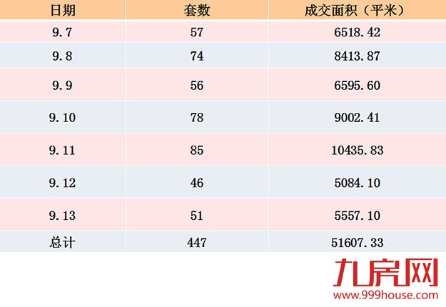 (9月7日-9月13日全市一手住宅成交详情)