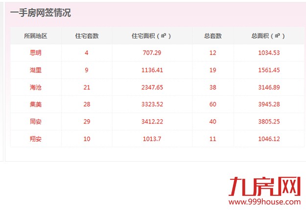 从各区的一手住宅成交数据来看,同安区成交29套,位居全市一手住宅成交排行榜榜首;集美区成交28套,位居排行榜第二位;海沧区成交21套,位居排行榜第三位。