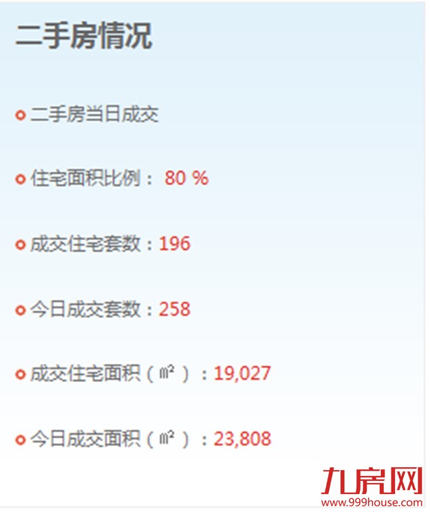2015年9月14日,全市二手房成交套数为256套,二手房成交住宅套数成交196套,一手住宅成交101套,环比上涨98.04%。思明区4套,湖里区9套,海沧区21套,集美区28套,同安区29套,翔安10套。