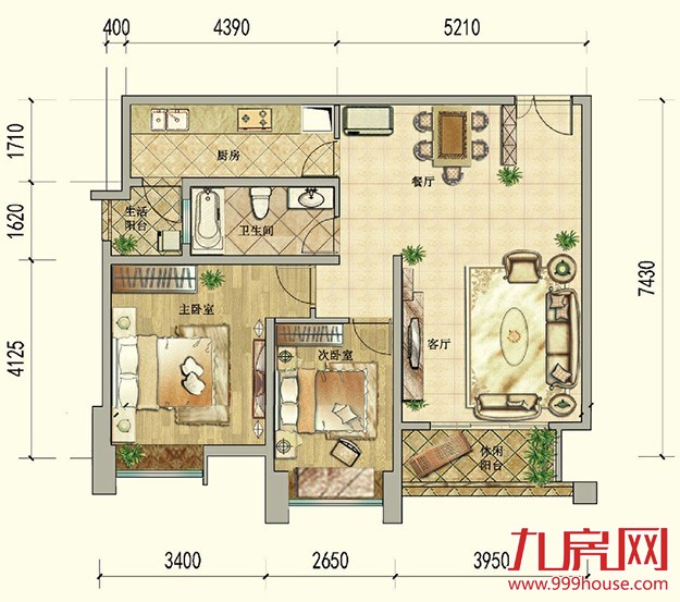 辅助区:对以上两部分区域功能起辅助作用,如厨房、卫生间、贮藏室、阳台等。