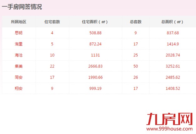 从各区的一手住宅成交数据来看,集美区成交22套,位居全市一手住宅成交排行榜榜首;同安区成交17套,位居排行榜第二位;海沧区成交10套,位居排行榜第三位。