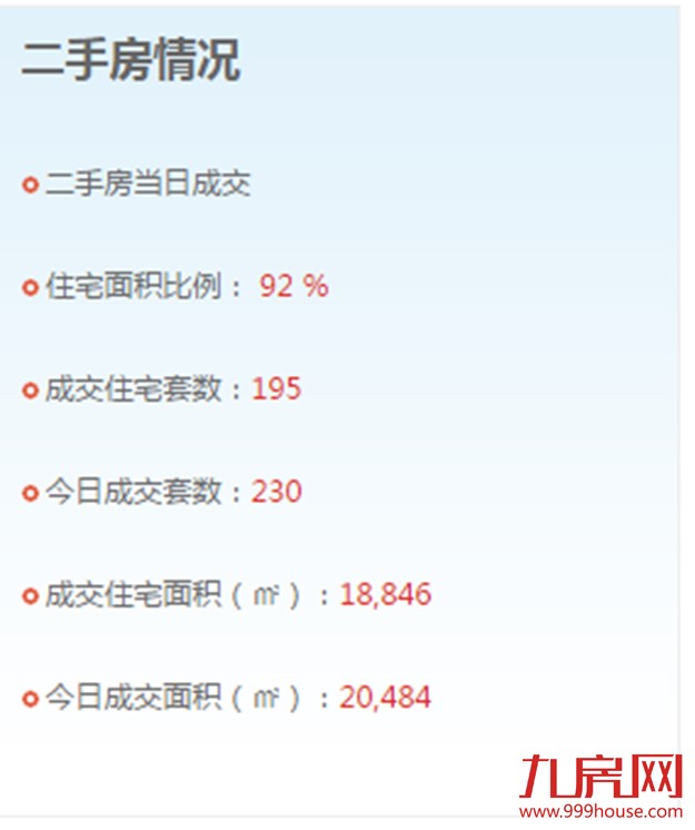 2015年9月16日,全市二手房成交套数为230套,二手房成交住宅套数成交195套,一手住宅成交67套,环比下跌16.25%。思明区4套,湖里区5套,海沧区10套,集美区22套,同安区17套,翔安9套。