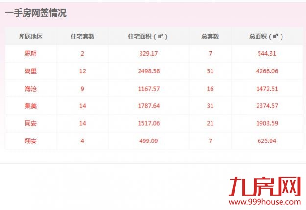 从各区的一手住宅成交数据来看,集美区和同安区成交14套,位居全市一手住宅成交排行榜榜首;湖里区成交12套,位居排行榜第二位;海沧区成交9套,位居排行榜第三位。