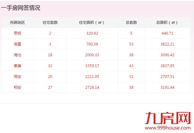 从各区的一手住宅成交数据来看,集美区成交32套,位居全市一手住宅成交排行榜榜首;翔安区成交27套,位居排行榜第二位;同安区成交20套,位居排行榜第三位。