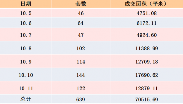 (10月5日—10月11日全市新房成交情况)