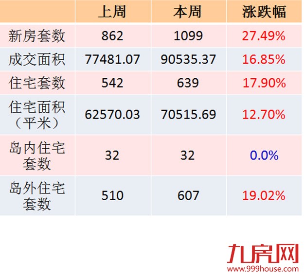 海沧区 本周一手住宅成交192套,比上周多了61套,区域签约面积为19764.50平方米。