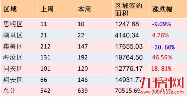 思明区 本周一手住宅成交10套,比上周少了1套,区域签约面积为1247.88平方米。