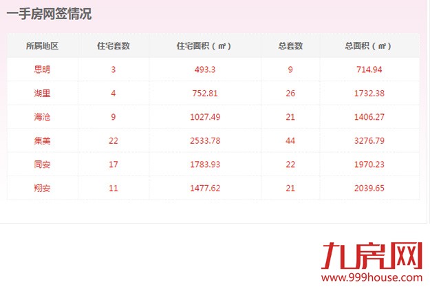 从各区的一手住宅成交数据来看,集美区成交22套,位居全市一手住宅成交排行榜榜首;同安区成交17套,位居排行榜第二位;翔安区成交11套,位居排行榜第三位。