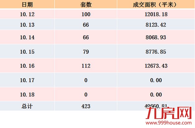 (10月12日—10月18日全市新房成交情况)
