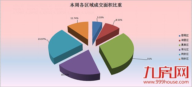 思明区 本周一手住宅成交19套,比上周多了9套,区域签约面积为2646.26平米。