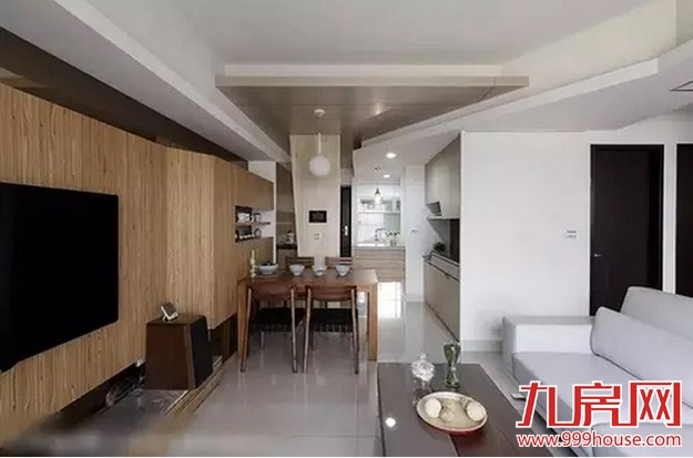 ★★以浅色梧桐木作為屏风,避免入门见厅的尷尬,侧旁则以茶玻保留视线的穿透性。