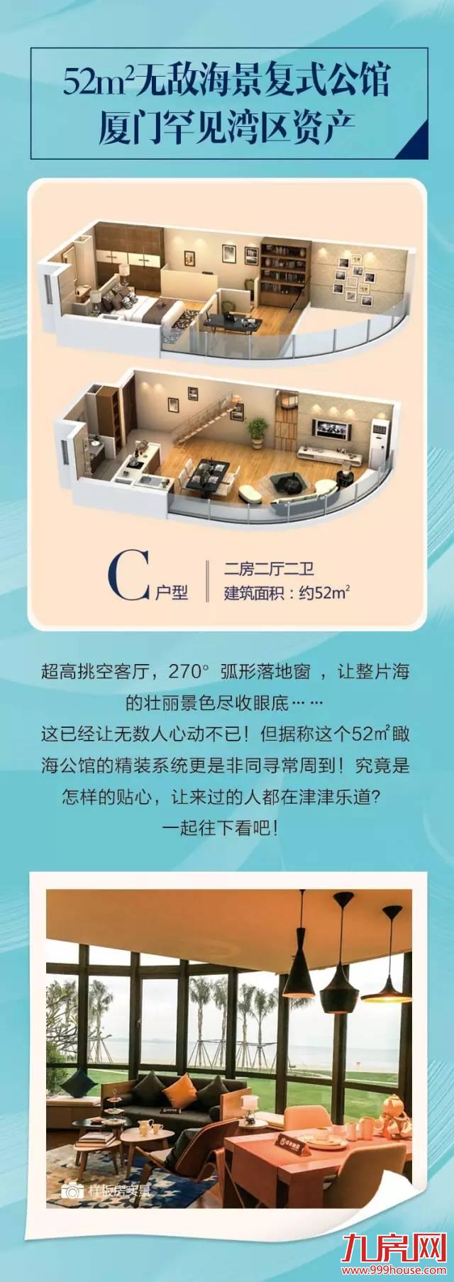 超阔绰弧形一线观景面,已是厦门罕见之作!更有8大贴心精装系统,成就全面家居解决方案。2015厦门最具收藏价值52㎡瞰海公馆,人气爆棚的秘密都在这里了!