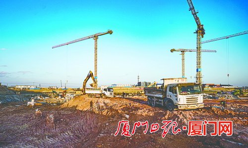 快速的推进需要高效有序的施工组织:22部塔吊有序运转,砖胎膜、桩芯、建筑实体、钢结构等施工用材通过长臂被吊运到工地的指定地点。这样的运转一直从早上持续到傍晚,待塔吊被夕阳勾勒出黑色的线条时,照明灯又亮起——指挥部、代建方、施工单位已经达成共识,还需再加把劲、再努力,“保安全、保质量”的前提下,更要争抢工期。“项目建设过年不停工,我们都已经准备好了。”王旭峰说。